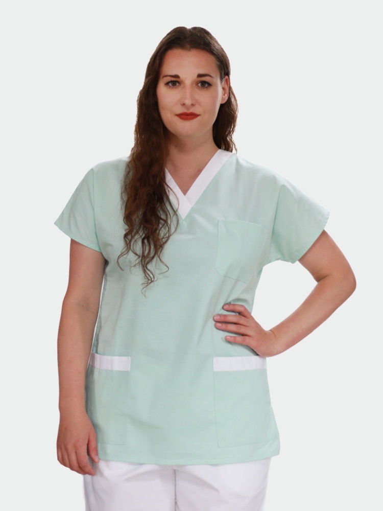Dámská zdravotní halena do V, zelená + bílá