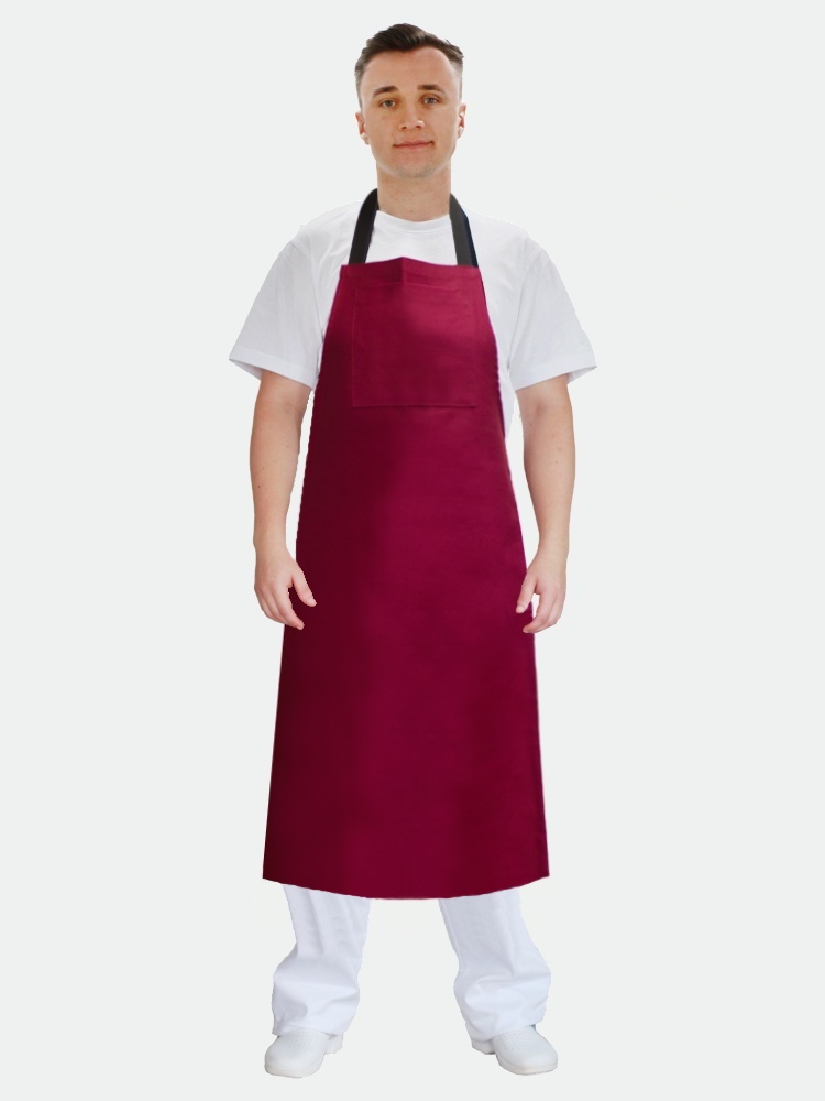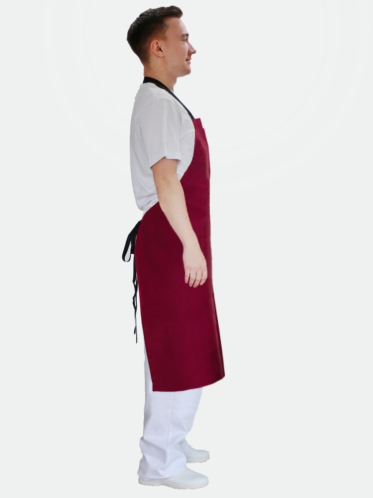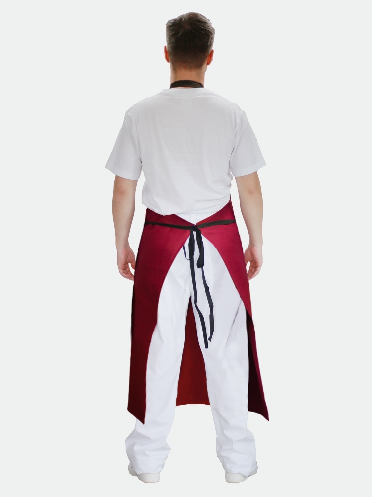 Univerzální pracovní laclová zástěra ve vínové barvě (vhodná pro muže i ženy), vázání na tkanice, 1 kapsa na laclu