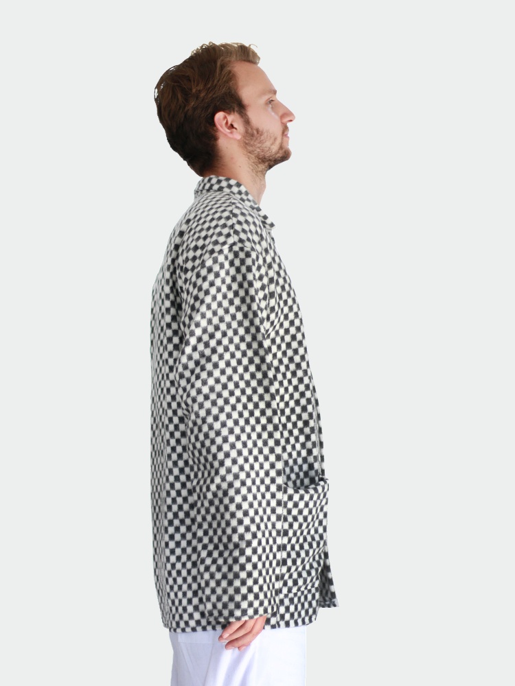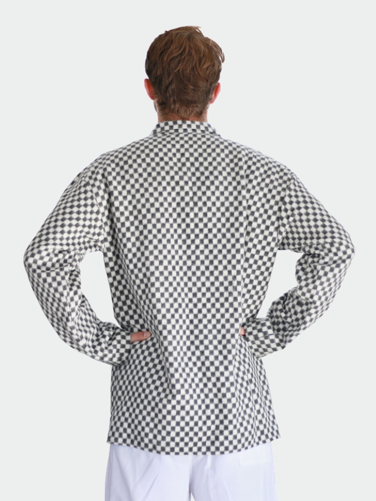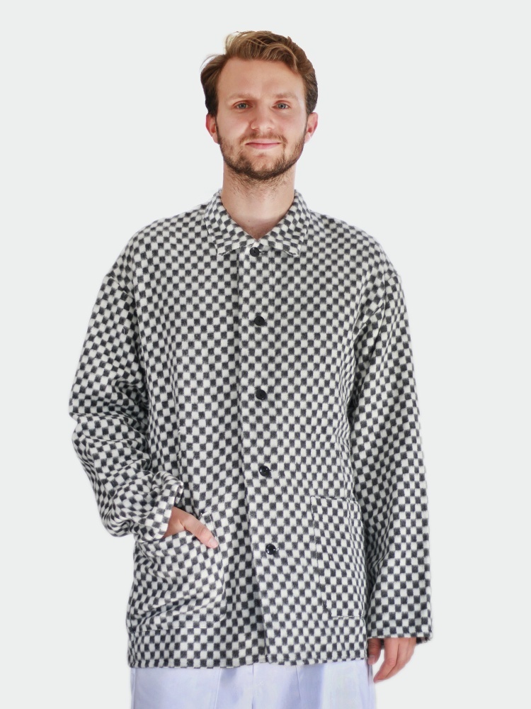 Řeznický kalmuk (zateplená blůza) s límcem. Blůza má zapínání na knoflíky a 2 boční kapsy. Doporučujeme vybírat velikost o číslo větší než je běžná konfekční velikost, protože se jedná o silnější materiál, který má tendenci se při praní srážet (srážlivost cca 6 %).