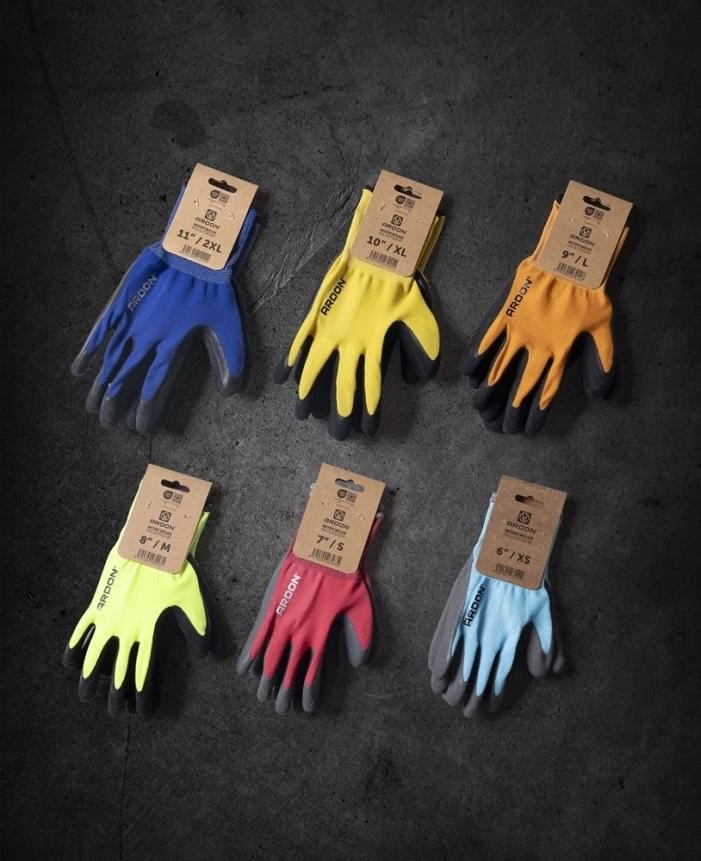 jemný kvalitní nylonový úplet 15 G, paropropustná vrstva latexové pěny na dlani a prstech